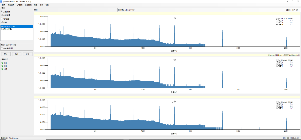 - 能夠顯示設備的運行狀況,如本底計數(shù)情況、人員測量計數(shù)等;