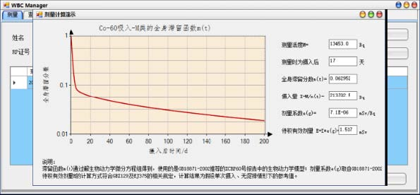 - 滯留函數(shù)顯示:劑量計算的同時??娠@示該核素自攝入后在體內的滯留量隨時間的變化曲線;