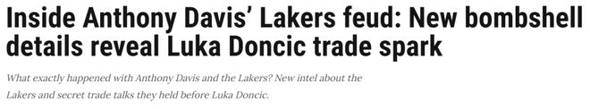 北京時(shí)間11月15日,名記Siegel長(zhǎng)文揭秘湖人當(dāng)初決定交易濃眉的更多內(nèi)幕。這位全明星球員的傷病和體能令湖人擔(dān)憂,但更讓湖人不滿的是他的職業(yè)態(tài)度下滑,訓(xùn)練敷衍。在最終用濃眉換來東契奇前,湖人曾與五支球隊(duì)秘密談判,其中包括凱爾特人。以下是報(bào)道主要內(nèi)容——
