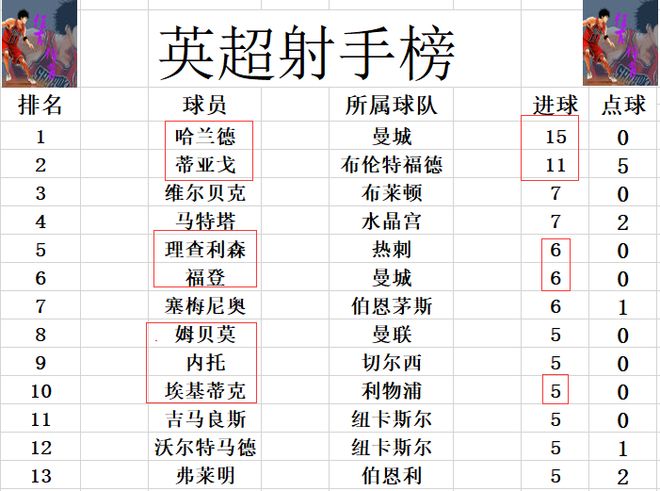 射手榜方面,哈蘭德今天沒有進球,還是15球領跑,蒂亞戈還是11球緊隨其后。馬特塔,維爾貝克7球并列第3。福登連連進球,他和理查利森追上塞梅尼奧,6球并列第5。埃基蒂克雙響,追上內托,姆貝莫等人5球剛好擠入前十。