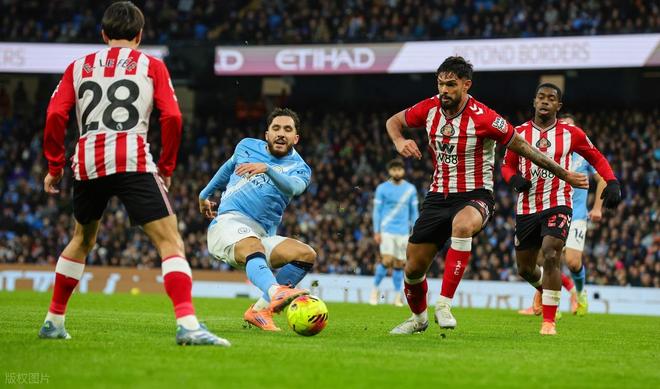 3分鐘后桑德蘭左側角球機會,無人防守的扎卡禁區右側搶點第2落點,稍作調整后大力抽射,BOOM的一聲皮球也是被門柱擋出。第65分鐘,曼城后場反擊,哈蘭德中圈處接球往前推進橫傳右側,B席爾瓦策應再斜塞右前方,謝爾基跟進拿球突入禁區,倒三角一記巧妙的插花腳挑傳中路,后排插上的福登小禁區前沿俯沖頭槌攻門得手,福登連續3輪破門打入5球,曼城3:0鎖定勝局。補時階段,中場拼搶中,奧尼安兇狠鏟倒努涅斯,主裁在VAR確認后直接紅卡將奧尼安罰下。最終曼城在主場3:0大勝桑德蘭,奪得3連勝。