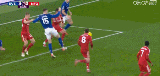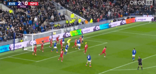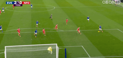 第80分鐘,霍爾禁區(qū)內(nèi)低射破門,埃弗頓3-0森林