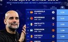 執教俱樂部前1000場場均積分前10:瓜迪奧拉第1,穆里尼奧第2